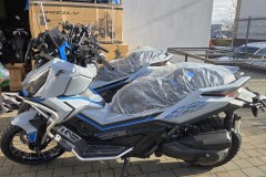 Nowoczesny skuter w stylu ADV, który wyróżnia się bogatym wyposażeniem i przystępną ceną. Silnik o pojemności 368 cm³ zapewnia odpowiednią dynamikę, a system hamulcowy z ABS zwiększa bezpieczeństwo na drodze. Skuter oferuje przestronną przestrzeń pod siedzeniem, regulowaną szybę, dostęp bezkluczykowy, regulowane zawieszenie, kamerę z przodu i z tyłu, podgrzewane manetki oraz gmole z halogenami. W standardzie znajdują się także gniazda USB oraz wyświetlacz TFT o przekątnej 8 cali. To doskonały wybór dla osób poszukujących komfortu, funkcjonalności oraz nowoczesnego designu.